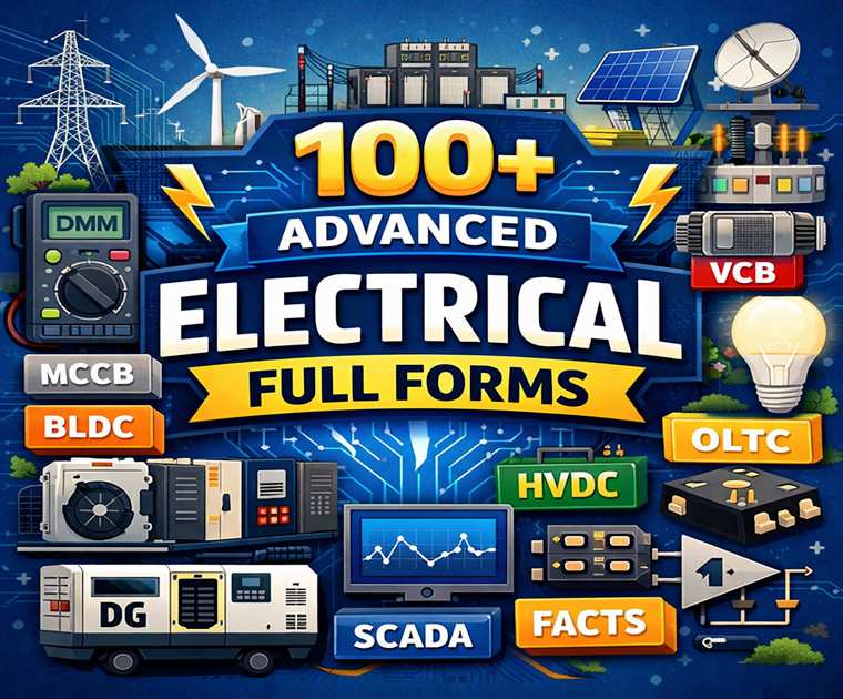 In Electrical and Electronics engineering, many advanced short forms are used. These terms are important for Students, Engineers and Technicians. Below is a simple and easy list of advanced electrical full forms.